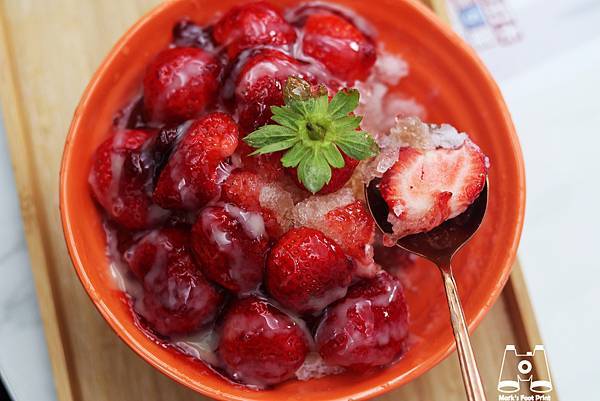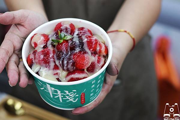 津棧的草莓冰可是老闆娘很推的,剛好有客人要外帶,跟老闆娘借來拍一下。
